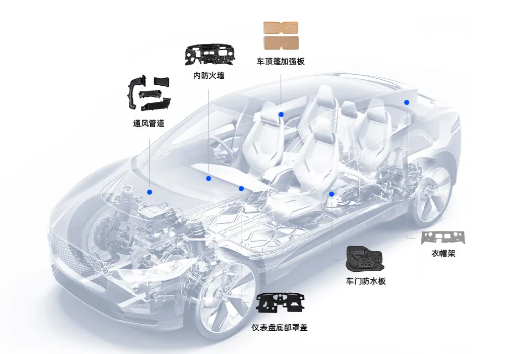 以卡酷思为核心,该板块是公司当前绝对的营收压舱石(占比超73%)和利润主要来源。在汽车电动化趋势下,由于没有了发动机噪声,路噪、风噪等更凸显,对NVH性能要求反而更高,同时轻量化需求迫切,该赛道天花板持续抬高。