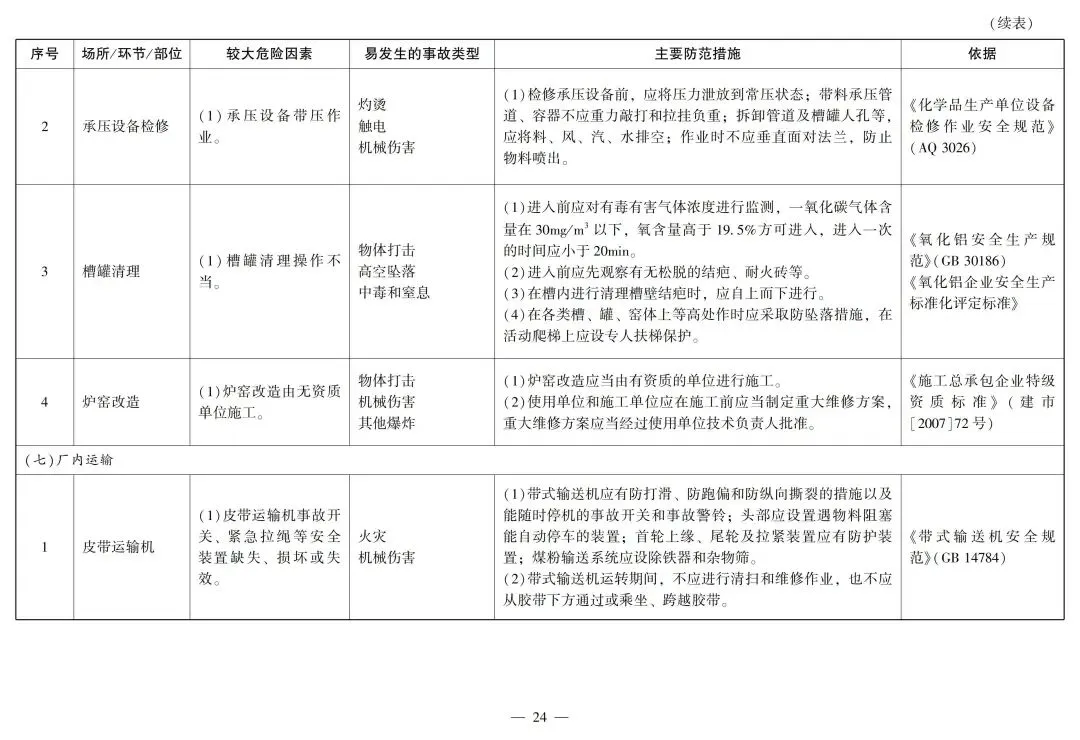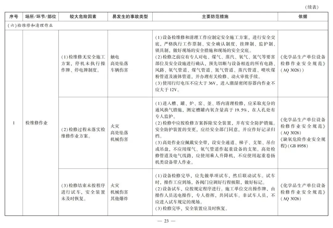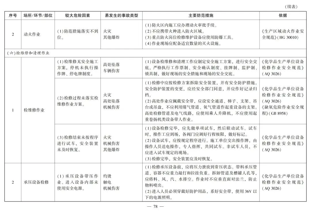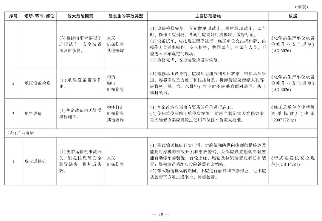 该手册结合了有色行业企业的安全特点,针对易发生较大以上事故的生产作业场所、环节、部位和作业行为,依据国家、行业法规、标准和技术规范,通过吸取相关事故教训,运用对照经验法、类比法、事故分析法等方法,提出了有色行业企业较大危险因素辨识的主要内容及其防范措施,供有关企业在开展较大危险因素辨识及制订防范措施中参考,供监管部门作为重点执法检查内容参考。