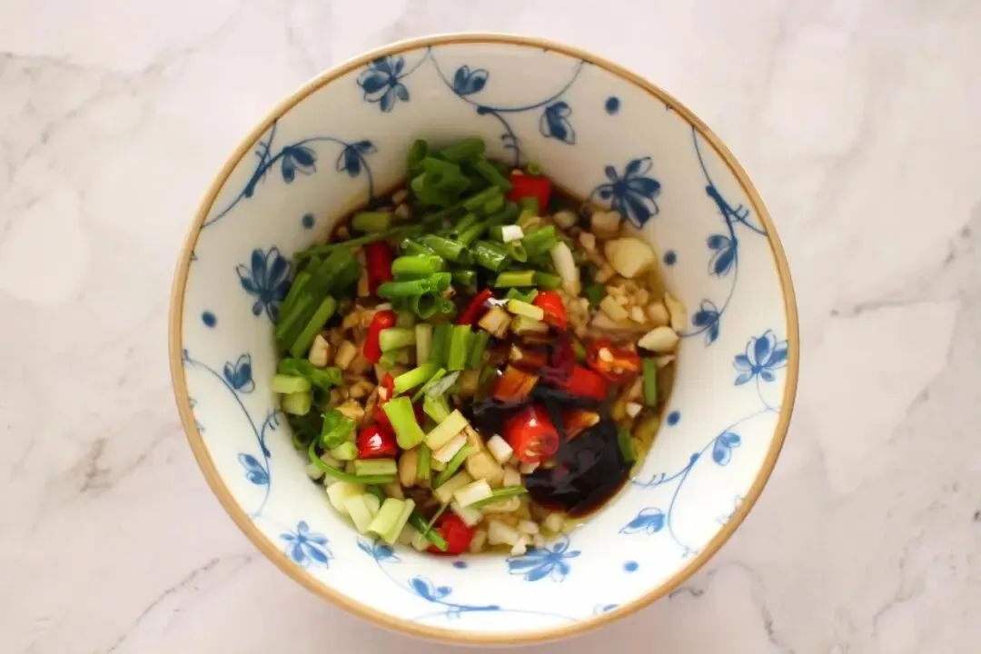 将葱姜蒜剁碎,小米辣切制成小段,再加入各种调味品混合均匀,制成酱汁。当茄子蒸好后,将酱汁淋在茄子上,一道美味的清蒸茄子便完成了。