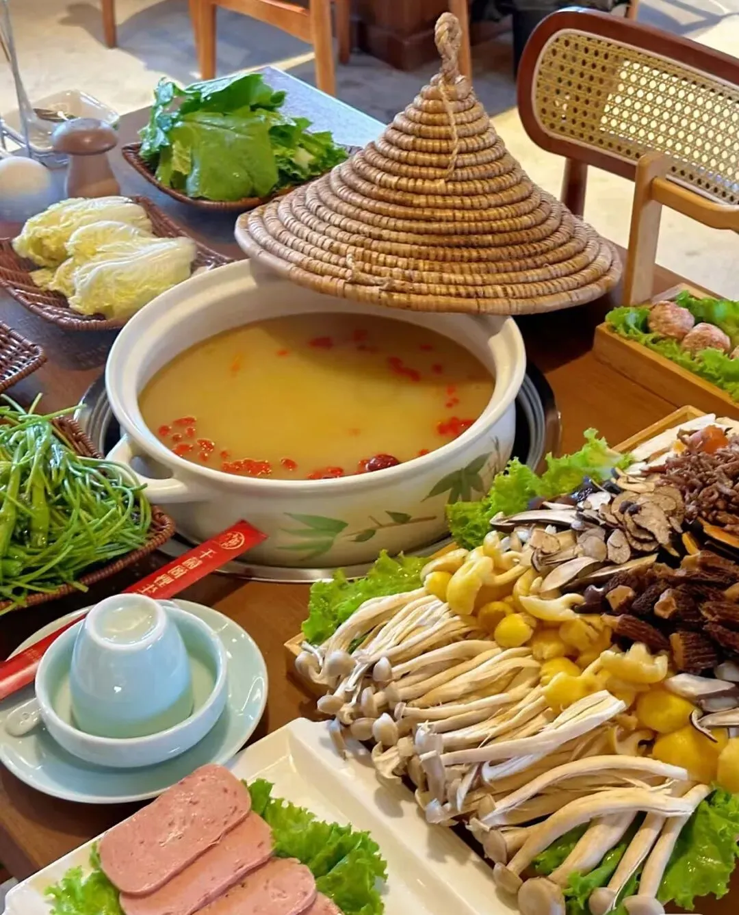 滚烫的高汤搭配薄如蝉翼的肉片、鲜嫩蔬菜,