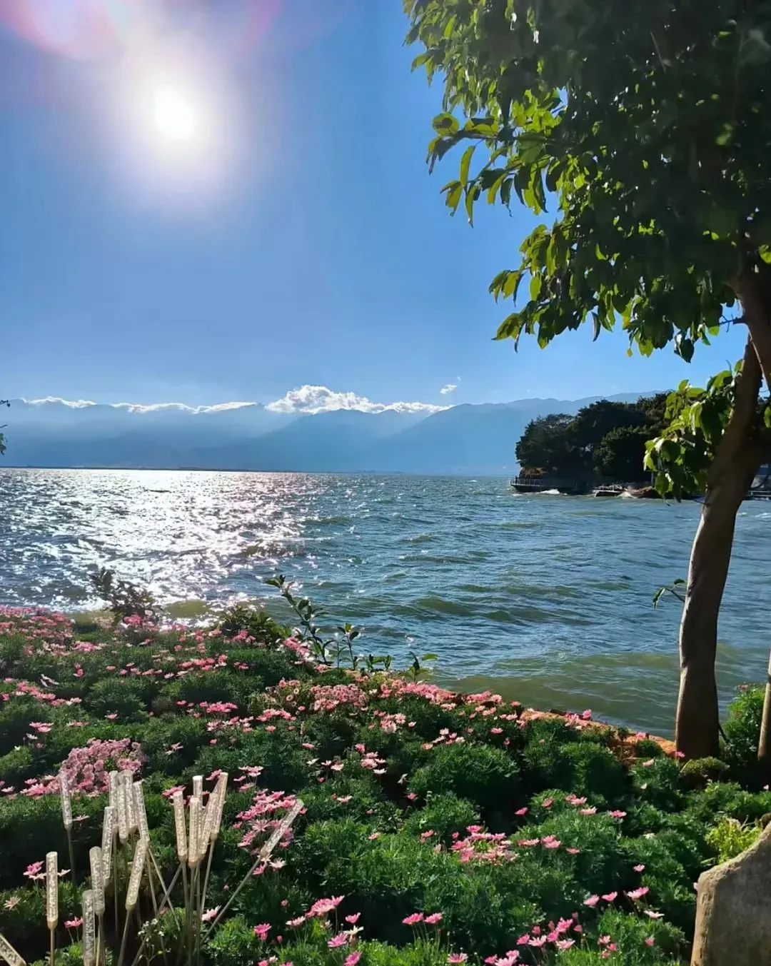 【洱海】,因形状酷似人耳得名,虽名为 “海”,实则是云南省第二大淡水湖,也是中国第七大淡水湖。洱海的美,美在多变的自然风光。金色的阳光洒在湖面上,波光粼粼,碎金闪耀,渔民划着小船在湖面穿梭,船桨划破平静的水面,荡起层层涟漪,画面宁静而美好~