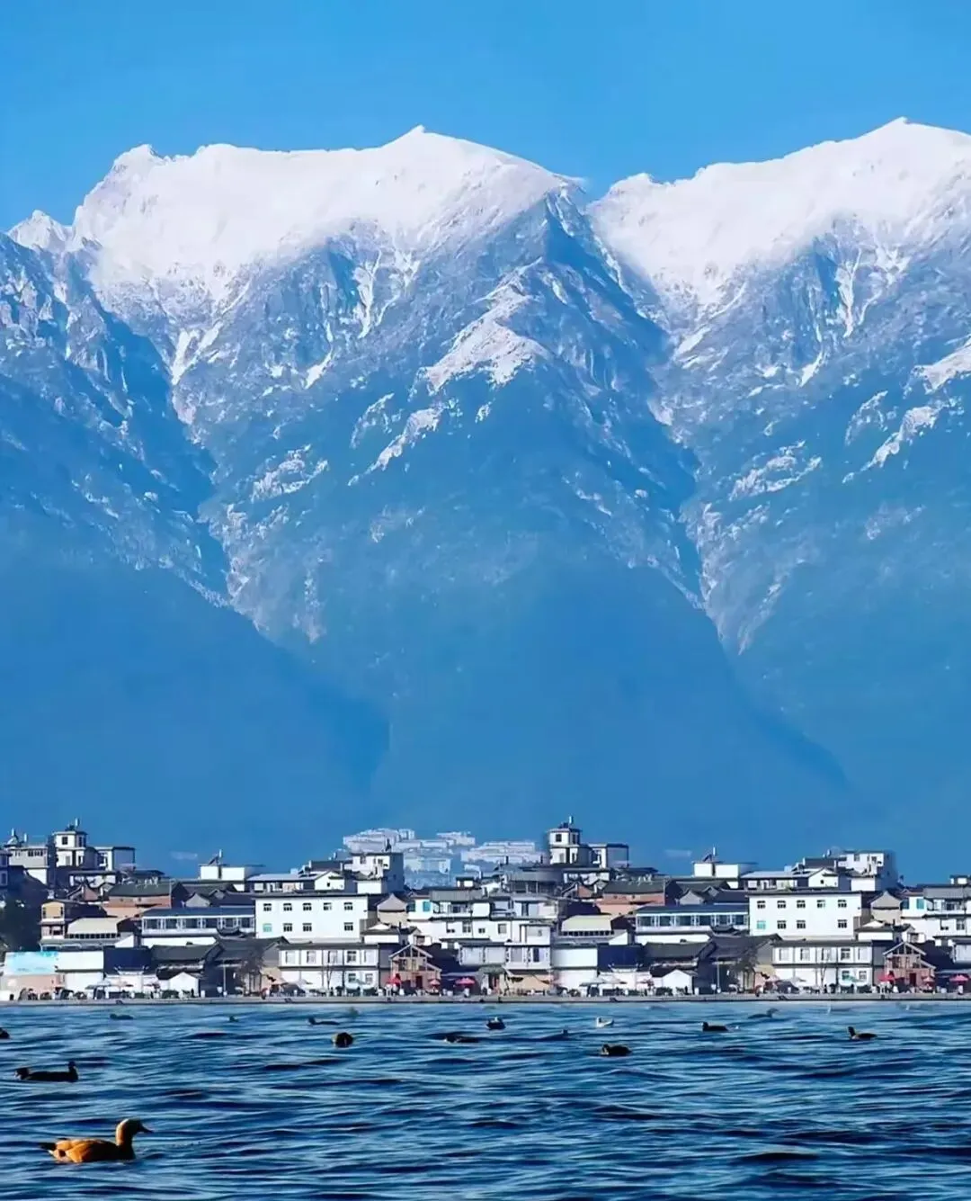 洱海西岸的【苍山】,十九座山峰巍峨耸立,山顶终年积雪,山腰云雾缭绕,山脚下则是繁花似锦的田园风光。苍山与洱海相互映衬,形成了 “苍山不墨千秋画,洱海无弦万古琴” 的绝美意境。