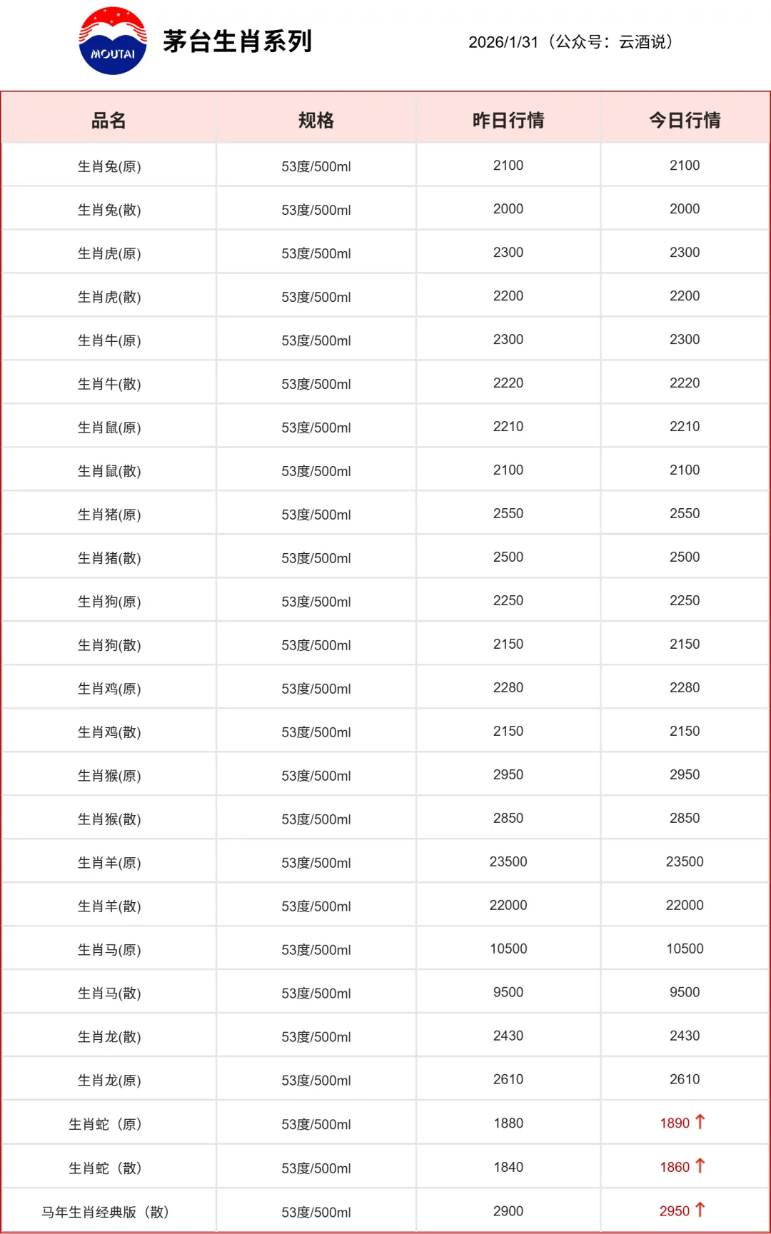 >1月31日,白酒茅台酒今日行情价格——茅台小幅度调整