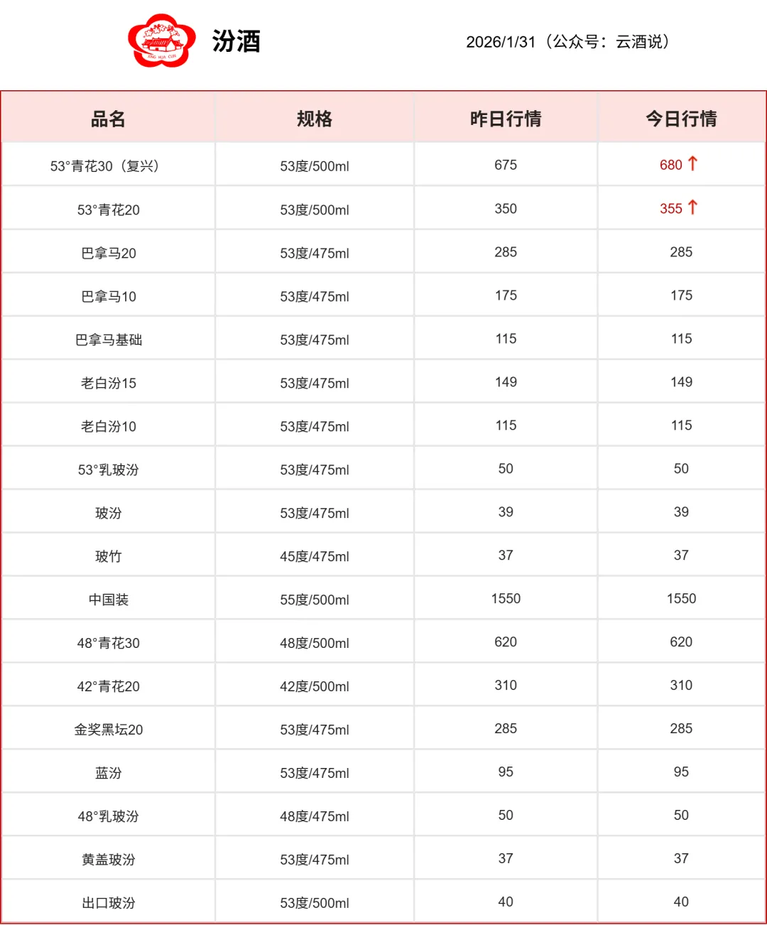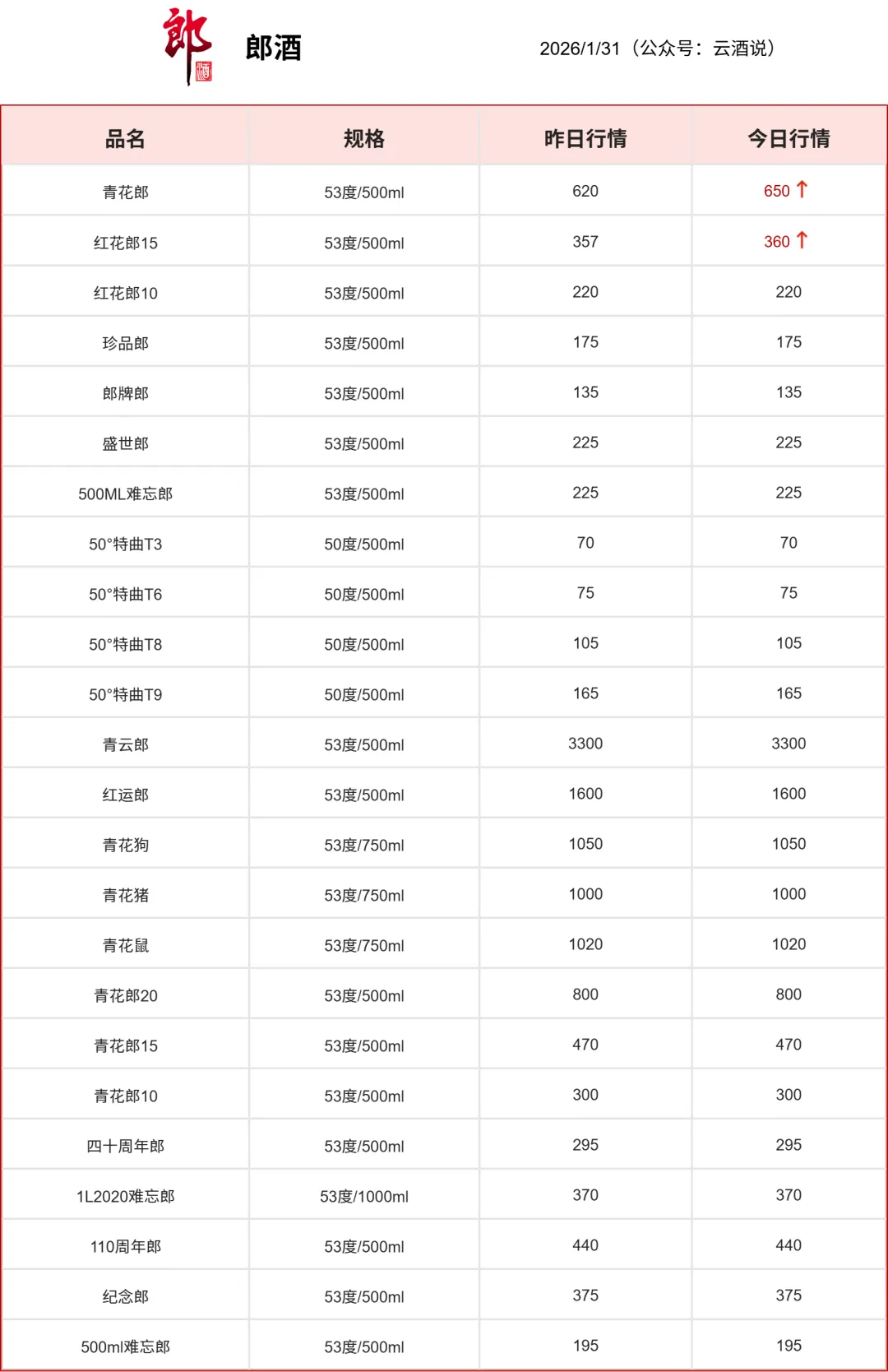靳松豪名酒供应链-茅台价格下跌各大名酒批发参考价 1月31日