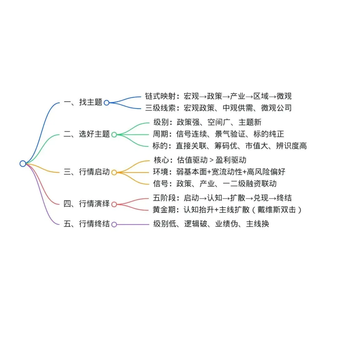 4. 主题生命周期结束:板块龙头公司股价见顶回落、时代级主线主题完成切换,资金全面流出旧主题、转向新方向。