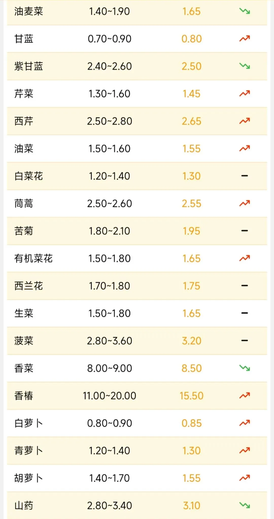寿光蔬菜交易价格及走势2026年1月31日