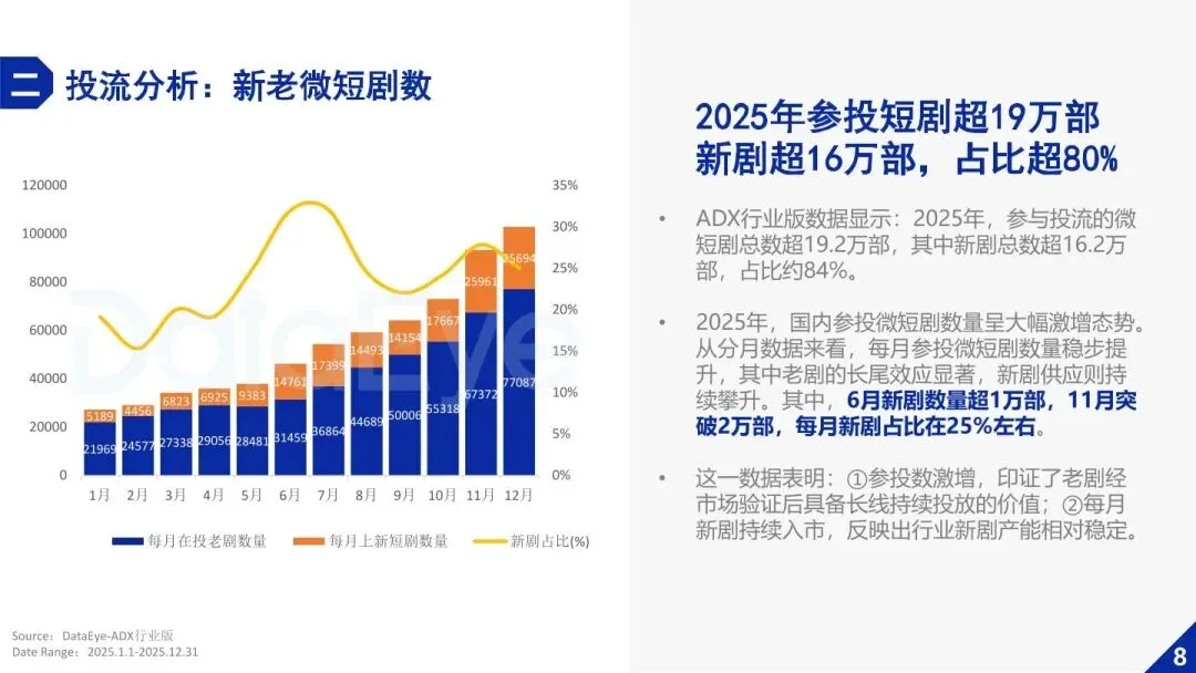 报告基于投流数据、用户行为、平台表现等核心指标,系统分析 2025 年微短剧行业发展现状,聚焦千亿市场规模下的免费模式崛起、用户年轻化、题材集中化等特征,拆解抖音、红果等核心平台的运营逻辑与竞争格局,为行业参与者提供题材选择、平台投放、用户运营的决策依据。