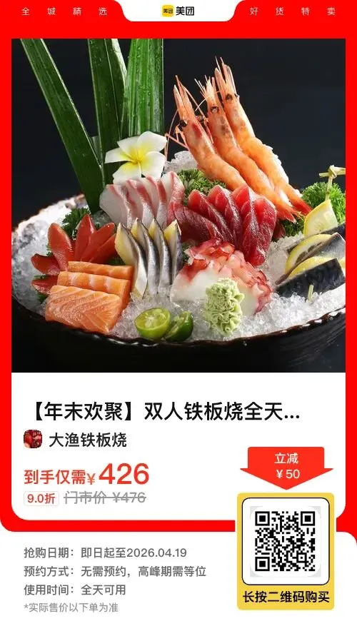🔥【大渔铁板烧|【盛宴共欢】双人铁板烧全天通用自助餐】