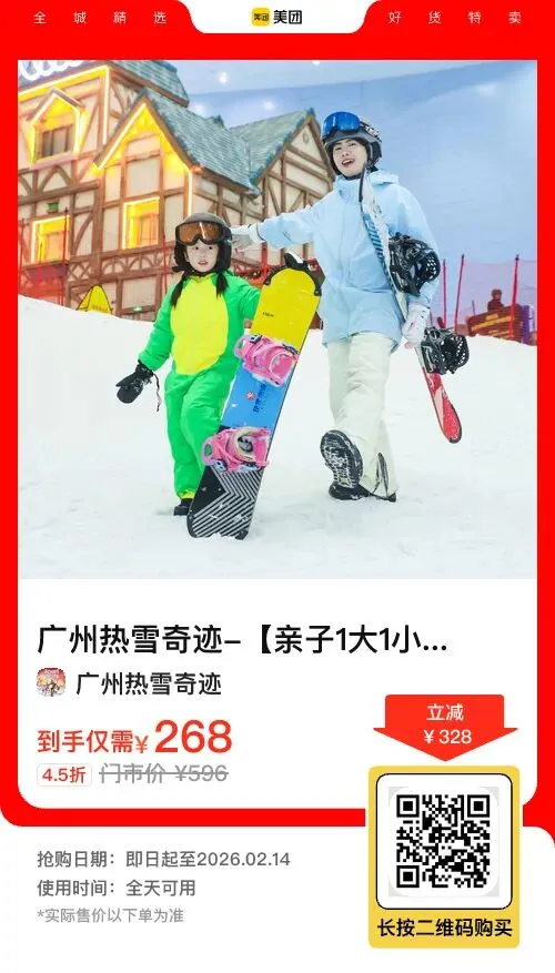 【周六放价】海底捞、大渔铁板烧、绿茶、顶界,热雪奇迹、鲸落spa,好吃好玩都有,低至4.6折,超值优惠,售完即止!!