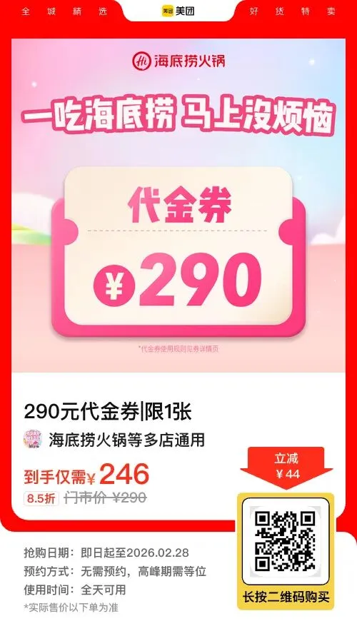 咱的优惠福利都自于美团,绝对真实可靠!!扫码下单前宝子们请先确认所在位置、阅读页面提示,确保在你当下的门店可以使用哦~