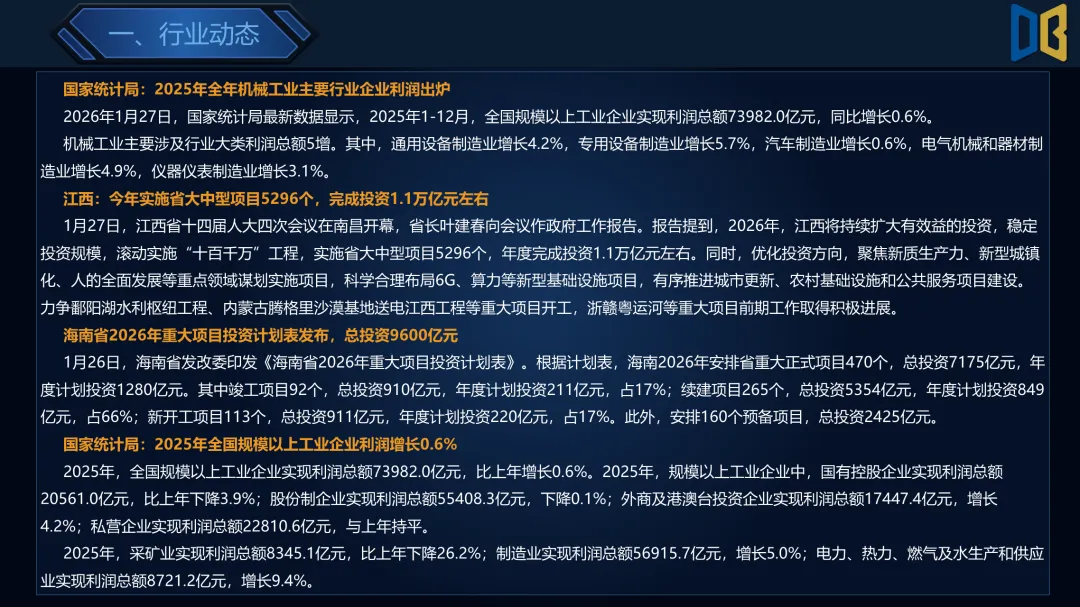 机械制造行业2026年第5周周报