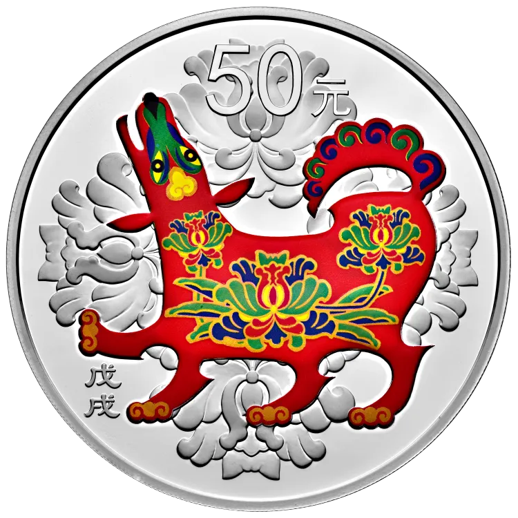 2018狗年150克圆形彩色银币,发行量30000,初始发售价2930,最新成交价4888,成交时间2026.1.29