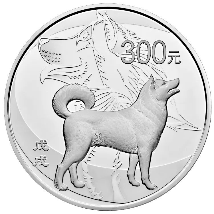 2018狗年1000克圆形银币,发行量10000,初始发售价10800,最新成交价17599,成交时间2025.12.20