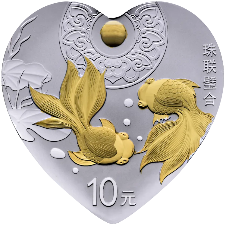 2018年吉祥文化30克心形银币珠联璧合,发行量60000,初始发售价480,最新成交价1088,成交时间2026.1.29