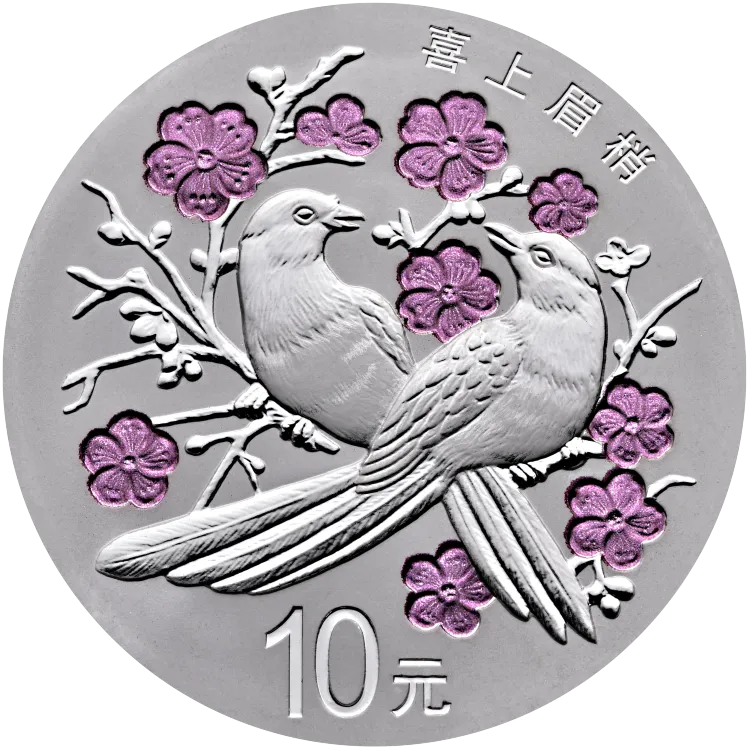 2018年吉祥文化30克圆形银币喜上眉梢,发行量60000,初始发售价480,最新成交价968,成交时间2026.1.27