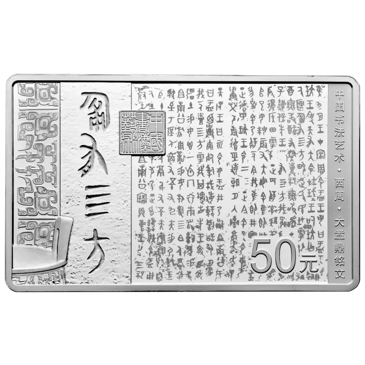 中国书法艺术篆书150克长方形银币,发行量5000,初始发售价2600,最新成交价6800,成交时间2025.2.24