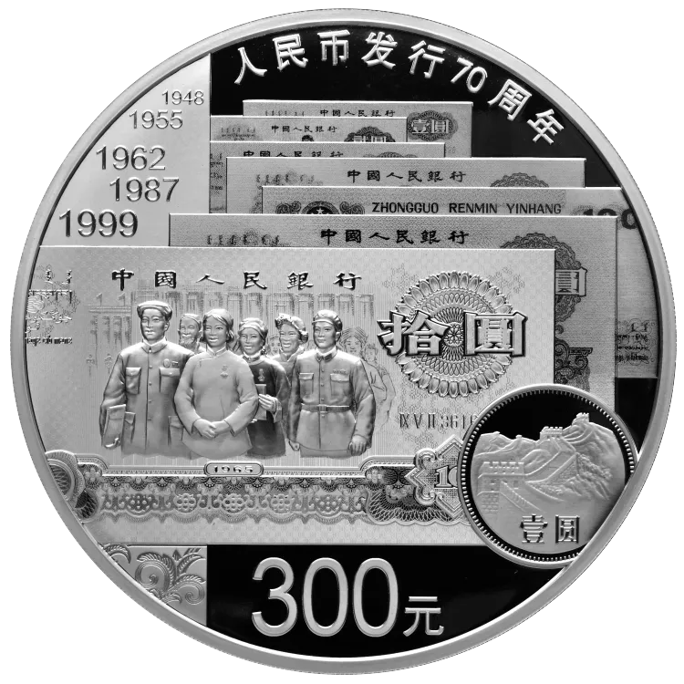 人民币发行70周年1000克银币,发行量3000,初始发售价9900