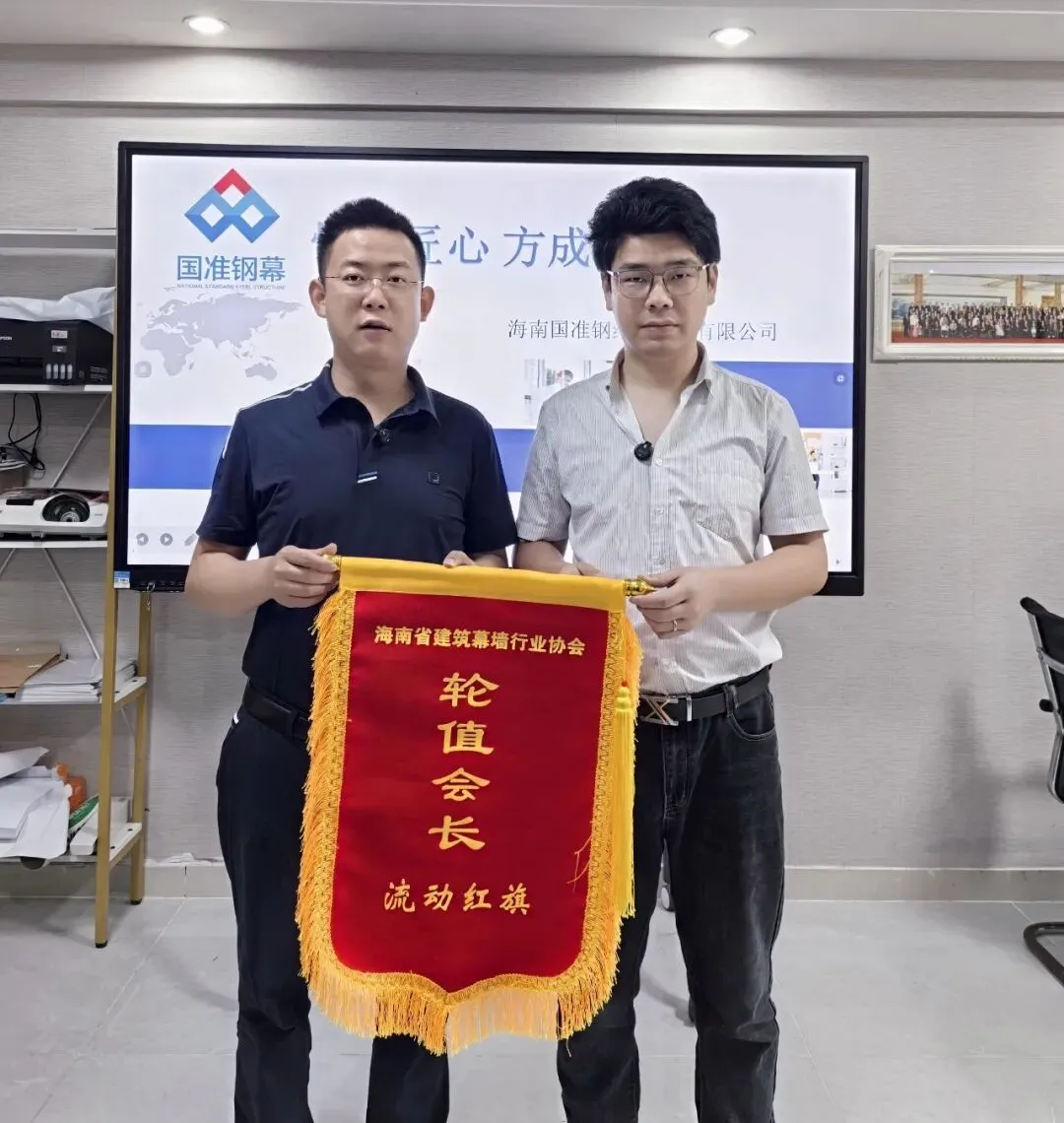 2026年1月31日,在协会秘书长石丽娟见证下,张纯将轮值锦旗交到孟宪鹏手中,海南国准钢结构工程有限公司将在2026年2、3两个月肩负轮值会长使命,担当轮值工作期间的会长职责。