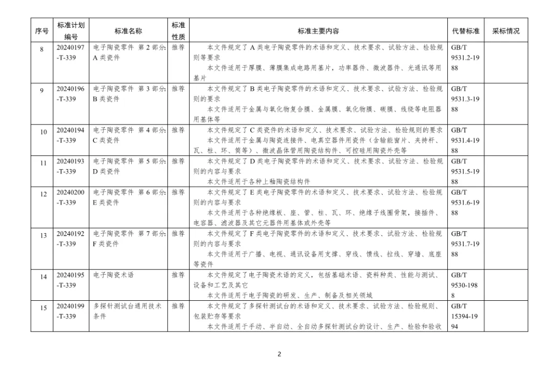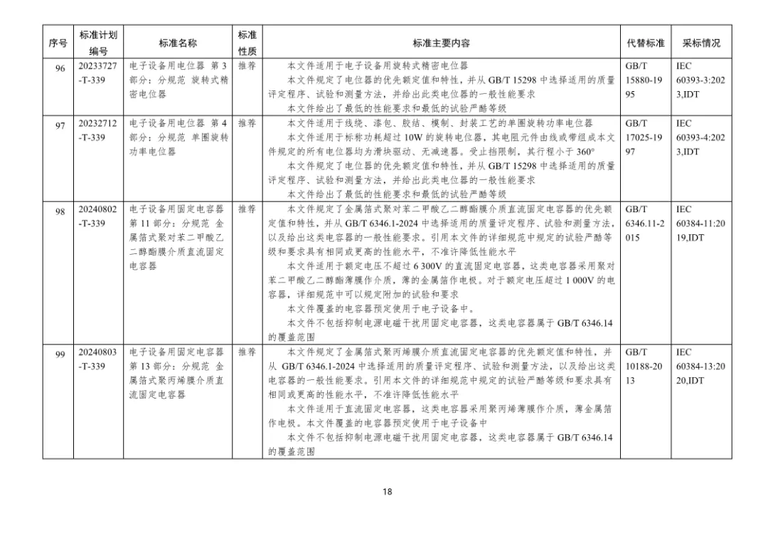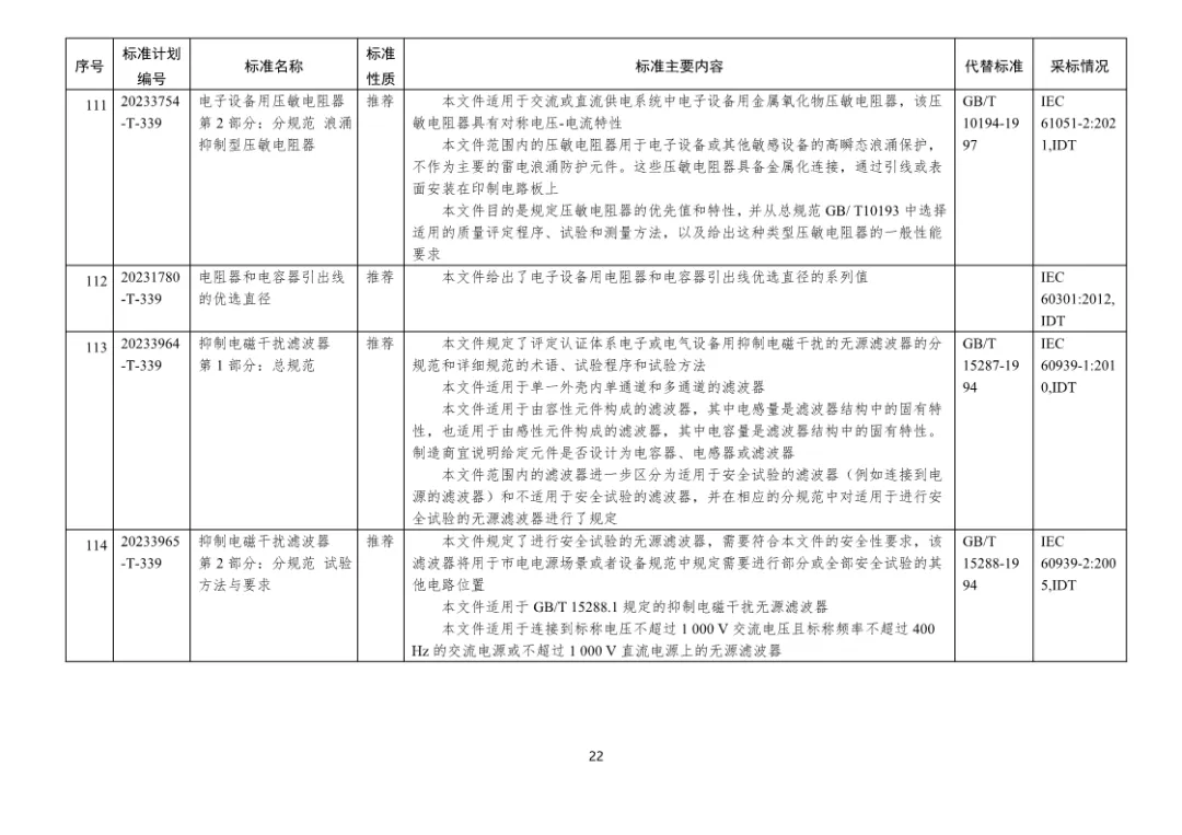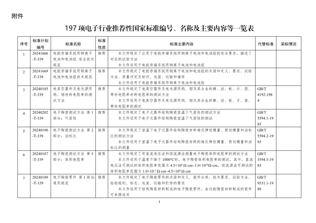 二、197项电子行业推荐性国家标准编号、名称及主要内容等一览表