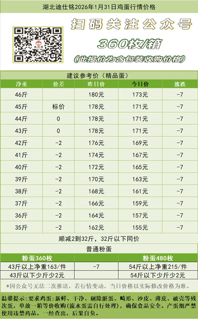 >湖北迪仕铭2026年1月31日鸡蛋行情价格