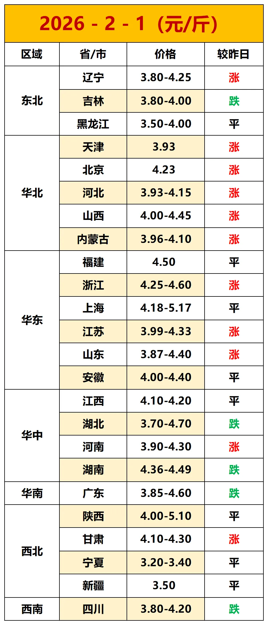 蛋价日评:今日鸡蛋价格稳中有涨。产蛋鸡存栏量小幅下降,库存处于偏低水平,养殖户挺价惜售,叠加前期北方物流影响,局部供应偏紧;春节节前备货需求仍在,北方务工返乡进一步拉动消费需求。短期来看,蛋价继续上行支撑有限,预计近期蛋价窄幅震荡调整。毛鸡市场:白羽肉毛鸡价格下跌。受鸡病影响鸡源偏紧,养殖户挺价惜售,需求端节前备货拉动毛鸡及分割品走货顺畅,预计短期价格将震荡调整。