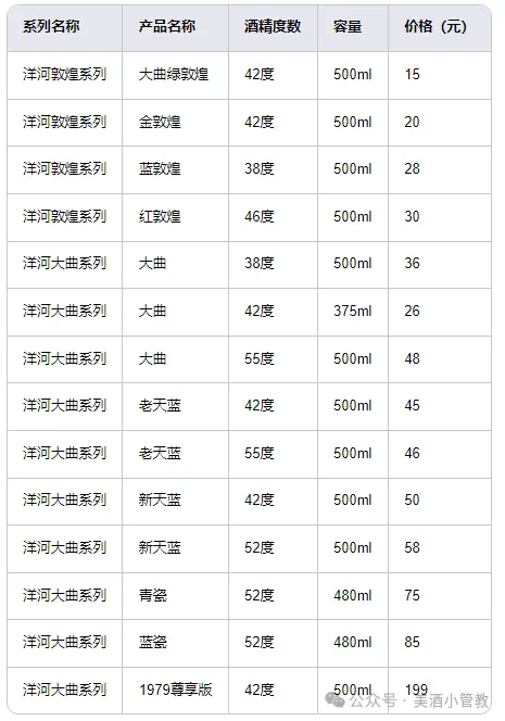 如果你对洋河酒的各个系列和价格感兴趣,不妨查看洋河系列酒价格表大全,那里详细介绍了各种洋河酒的价格和特点,帮助你更好地了解和选择适合你的洋河佳酿。
