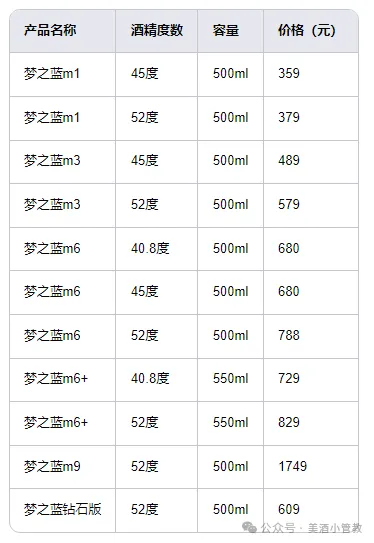 梦之蓝M9:价格较高,具体价格需查询最新信息