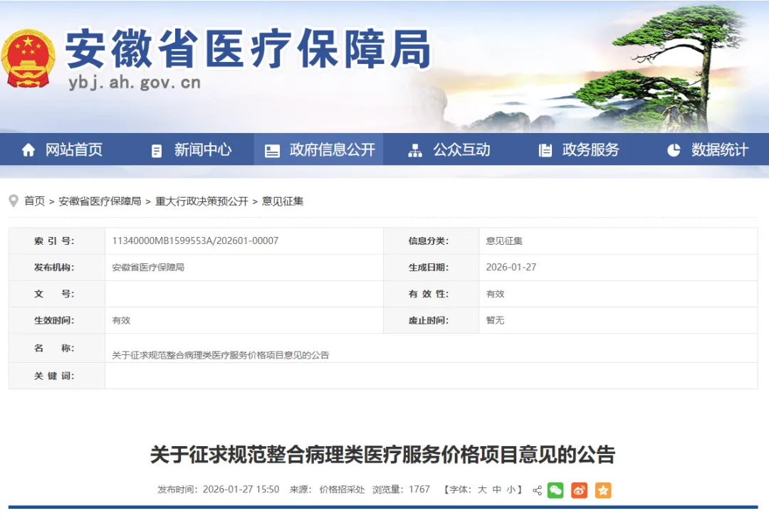 2026年1月9日,重庆市医疗保障局发布了《关于规范病理类医疗服务价格项目及医保支付政策的通知(公开征求意见稿)》。一是对项目体系进行了根本性的重构与规范化定价,二是进行了一系列体现技术价值并鼓励创新的精细调整。