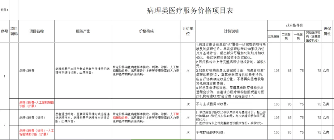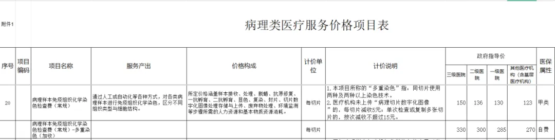 4.单独设立了病理诊断价格项目,更好体现临床诊断金标准的劳务技术价值,在“术中冰冻”、“限时处理(24h)”等细分场景,还设置了加收项;