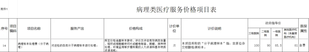 整合后病理类医疗服务价格项目表(征求意见)