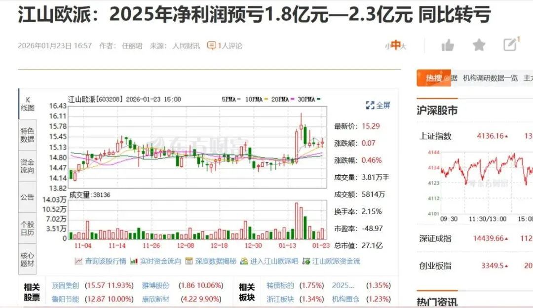 从2024年盈利1.09亿,到2025年前三季度亏4149万并关停基地,再到2025全年预亏超1.8亿——江山欧派在一年内的业绩“跳水”,勾勒出一条陡峭的下行曲线。