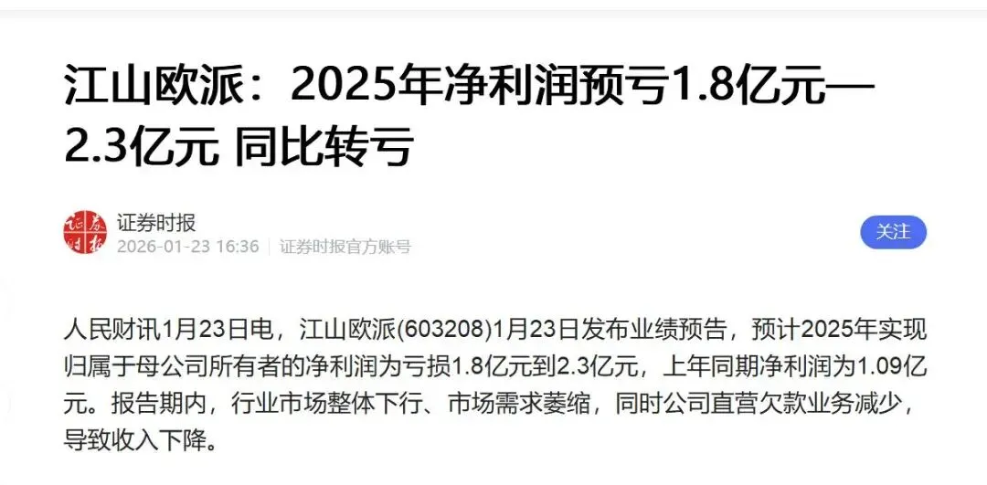 从年赚一亿到预亏两亿,再到主动关厂止血,江山欧派的这张成绩单,远非一句“行业不景气”可以概括。它更像一份为过去商业模式支付的总账单,一次彻底的“财务洗澡”,以及一场为未来生存而进行的战略涅槃。