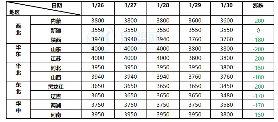 华东地区作为全国风向标,山东、江苏价格均下跌200元/吨,对全国市场形成向下牵引。西北市场内蒙和陕西跟跌200元/吨和180元/吨,而新疆因地理位置独立价格保持稳定。华北、华中地区跌幅在150-180元/吨,东北地区则出现补跌行情,黑龙江和辽吉跌幅达200元/吨和170元/吨。这种区域差异体现了主流市场对边缘市场的传导效应,以及本地供需基本面的差异影响。