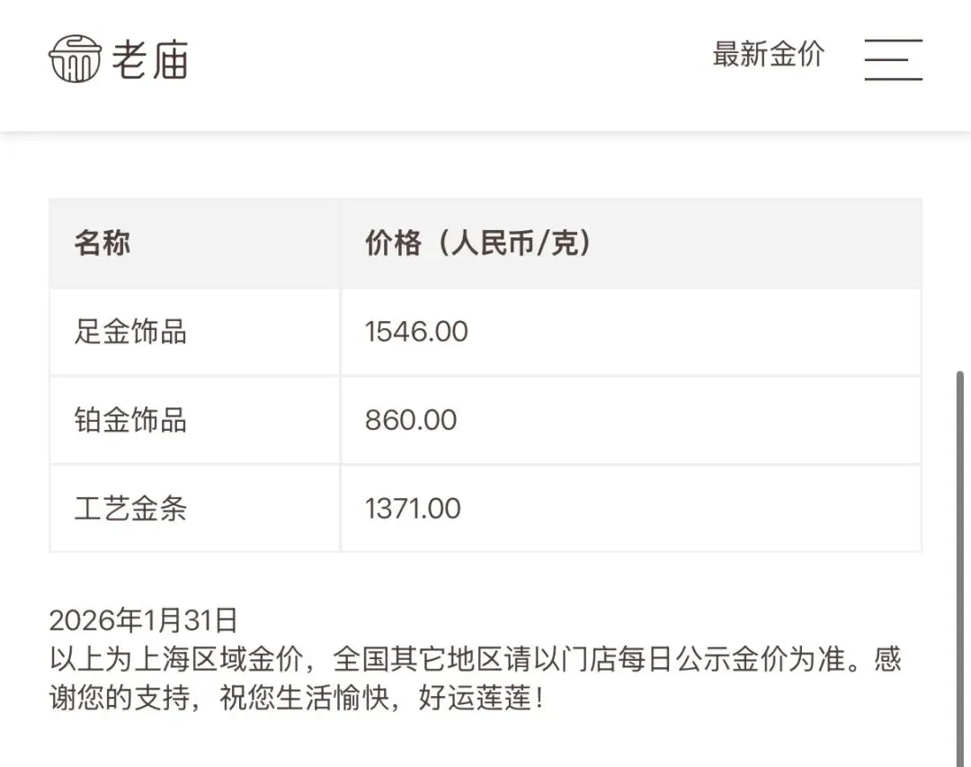 受此影响,部分国内品牌金饰价格也大幅下跌,克价单日跌超百元。中新经纬31日查询发现,周生生足金饰品报1543元/克,较前一日此时跌119元;老凤祥足金饰品报1498元/克,单日跌170元;老庙黄金足金饰品报1546元/克,较前一日此时跌144元。消息面上,美国总统特朗普30日提名美联储前理事凯文·沃什为下任美联储主席,这一提名还需获得参议院批准。中国外汇投资研究院研究总监李钢此前对中新经纬表示,凯文·沃什被提名为下任美联储主席,他长期批评超宽松政策,市场担忧利率路径更陡峭,削弱黄金避险吸引力。地缘政治风险缓和降低了避险需求,而流动性枯竭和量化资金“踩踏”加剧了波动。展望后市,李钢仍持乐观态度,支撑因素包括全球去美元化、央行持续购金、地缘紧张和通胀预期。“但当前价位下波动性放大,需警惕美联储政策不确定性和获利回吐。”投资者如何决策?李钢建议,已“上车”投资者锁定部分利润,多元化配置(如债券或股票)分散风险;对于尚未“上车”者,这是潜在买入机会,可等待进一步回调分批投资。正信期货研究院此前表示,当前白银和黄金上的头寸已经严重超买,在暂无更多利好因素的情况下,短期内金银价格面临极高的获利回吐风险。因此短期内波动性风险仍存,需谨慎观望为主,仅可在急跌段轻仓试多,中长期以持多为主,关注金银比上涨修复机会。金价跌了,之前买的金条金饰可以退吗