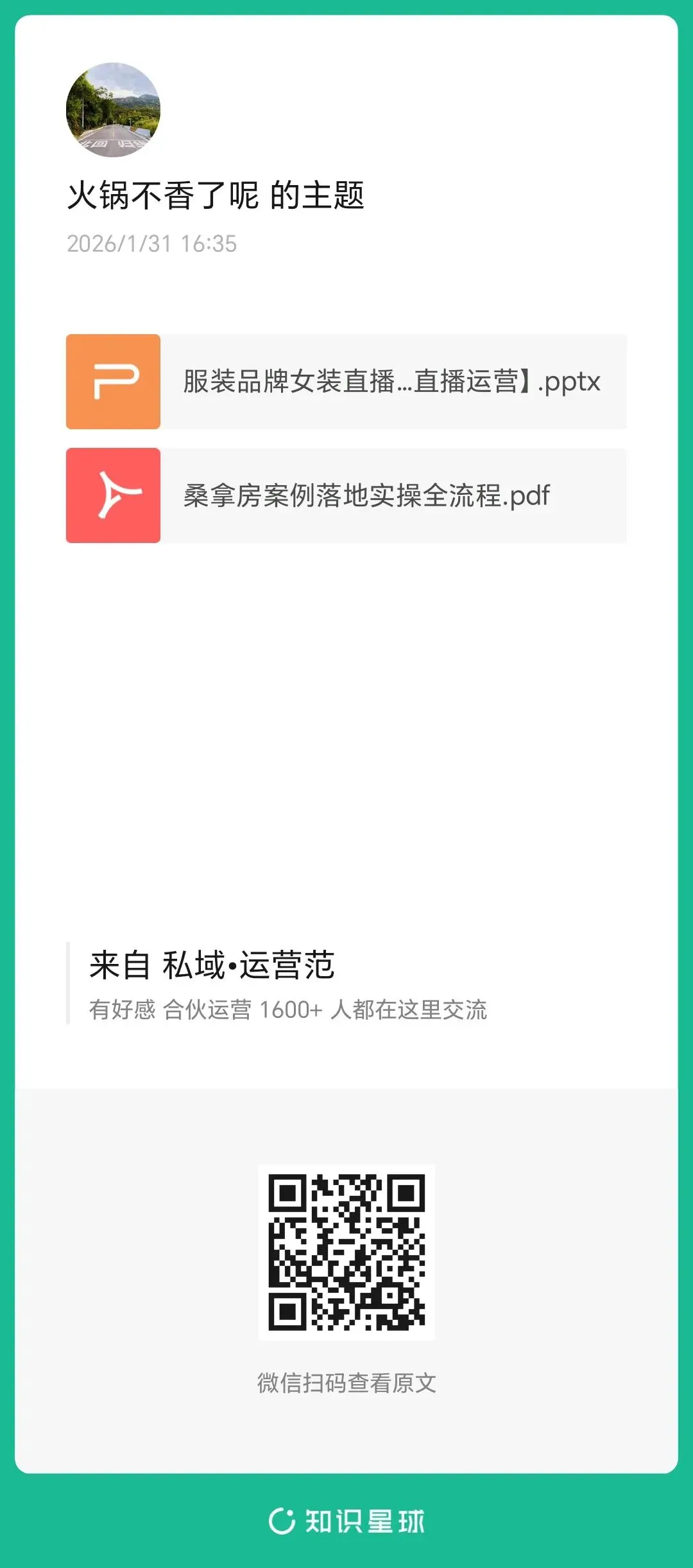 🔺点击上方卡片关注我,即可获得知识星球30元新人立减券。【运营范】知识星球,每天都会更新群友问答收集、营销方案、活动方案、数据报告、行业洞察、案例拆解等。每天为你整理一篇《知识星球·精华收集录》奉上,让你不错过一条优质内容。今日内容如下:今日看点: