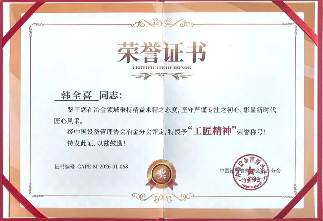 近日,“十五五”钢铁行业绿色低碳、智能升级交流会在日照召开。会上,经中国设备管理协会冶金行业分会评定,中天钢铁集团(南通)有限公司周春雷、陈玉辉、韩全喜三人荣获钢铁行业“工匠精神”荣誉证书。