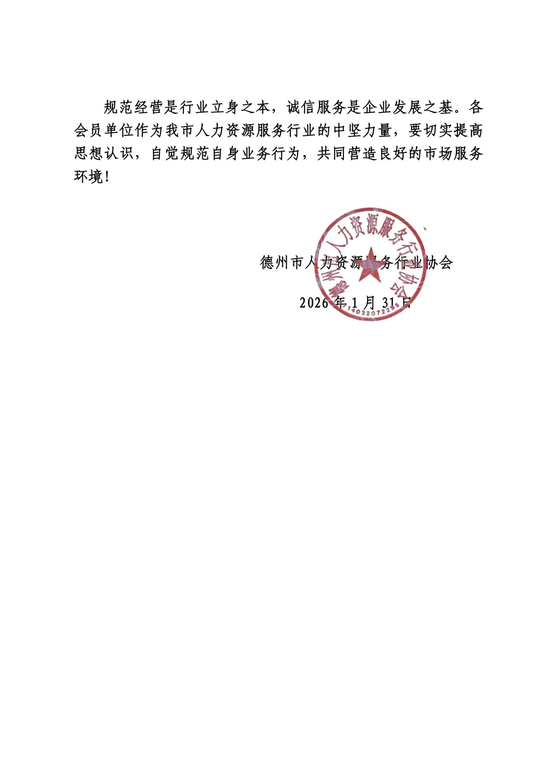 关于规范作业行为、坚守行业底线的倡议书