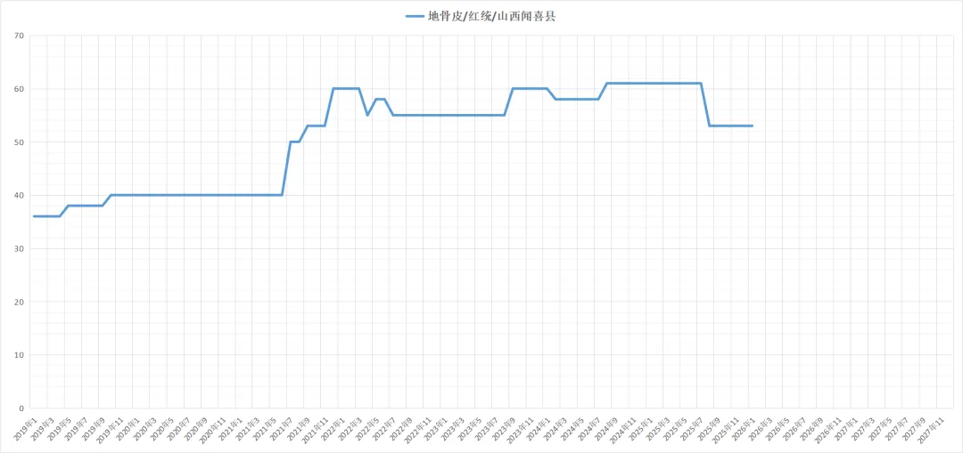 当地有货源可供,近期多商前来寻货,货源走动畅快,现药厂货售价在35元上下,选货70元(九成半干)。