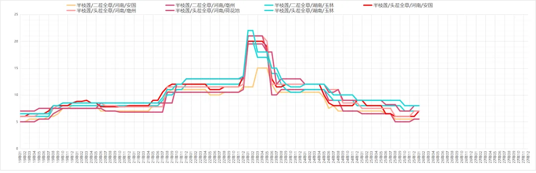半枝莲货源走销不快,近期市场商家关注力度一般,价格无明显波动,现河南头茬货价格在6.5元上下。