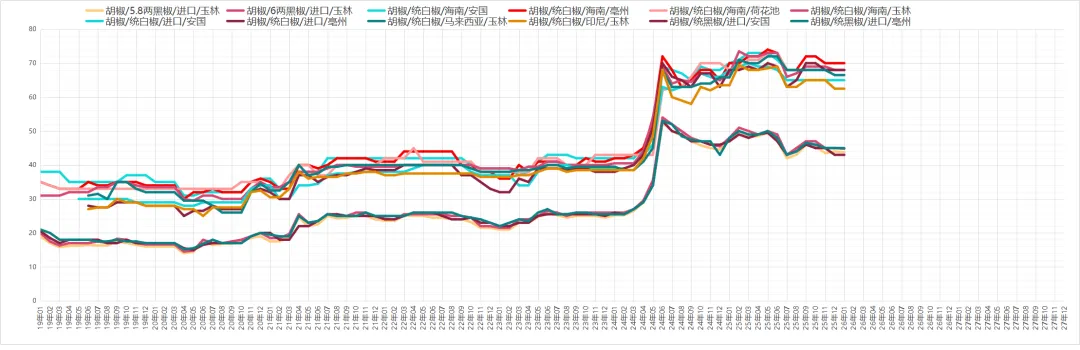 黑胡椒行情暂时变化有限,因近日产区价格上调,市场关注商家又有一定增加,但行情暂时变化有限,目前亳州市场统货多要价在45元左右。