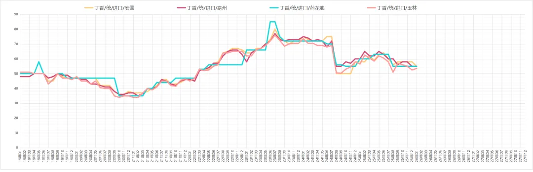 公丁香行情出现小幅上扬,近日均为正常购销,但因产地价格持续上调,市场行情出现小幅上扬,目前亳州市场公丁香大红货多要价在58元左右。