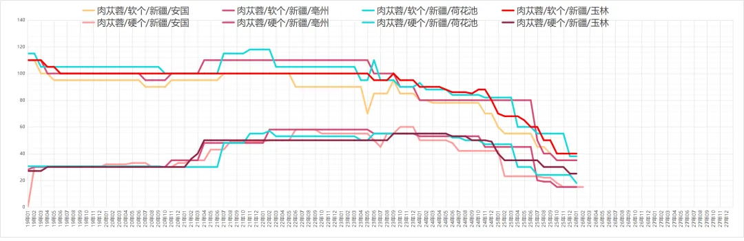 肉苁蓉价格小幅反弹,因价低有商趁低购进,带动价格小幅反弹,目前亳州市场硬大芸春货多要价在15元以上20元以下,其中包水分货报价在19元左右;而软大芸统货多要价在35-40元之间不等,中条报价在45元左右。