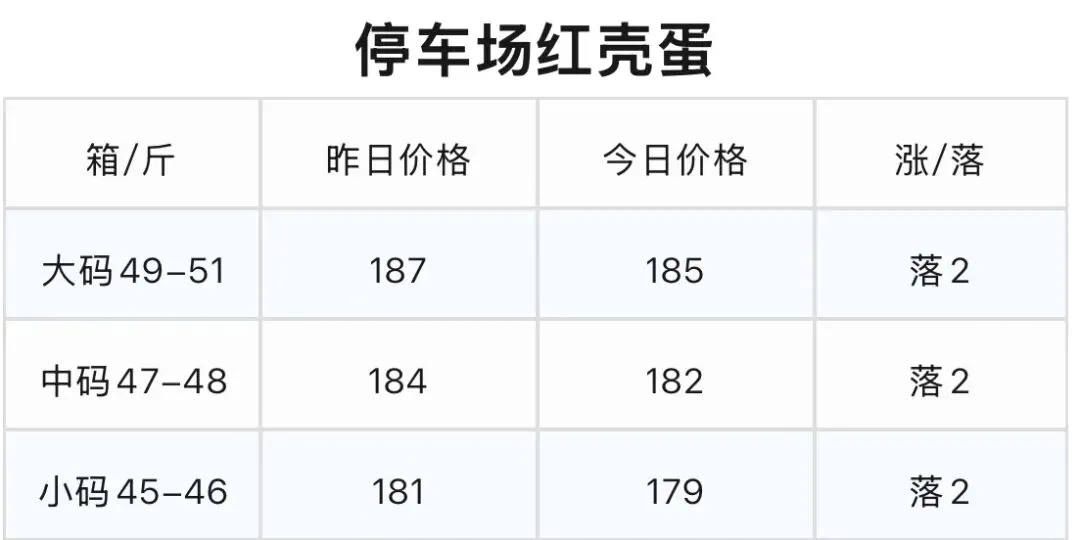 2.红壳蛋:各规格价格均下跌2元/箱