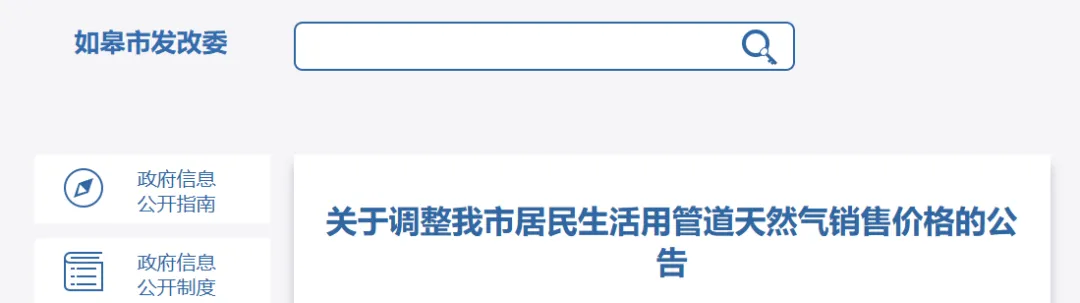 如皋市天然气价格调整,时间定在...