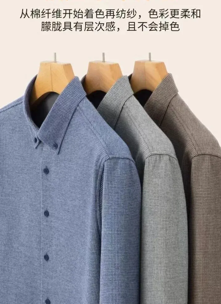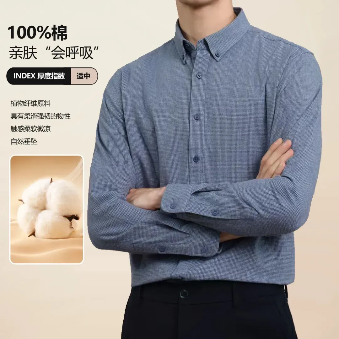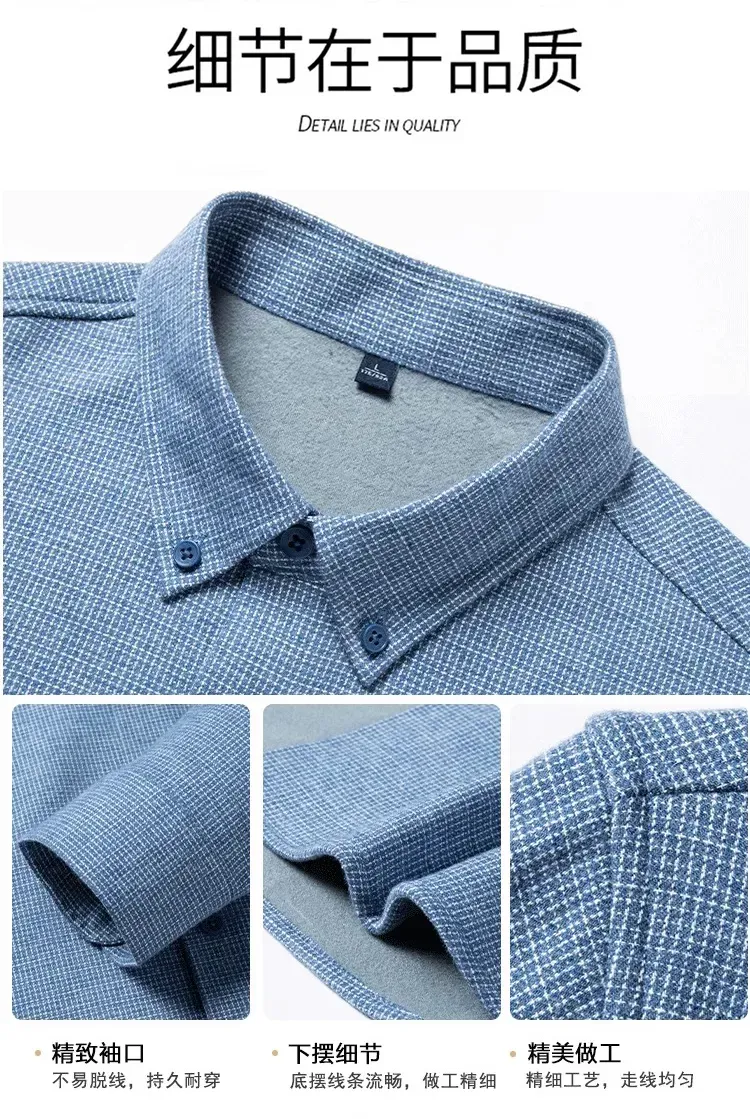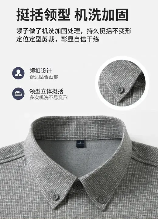 不仅看起来稳重得体,还自带一种商务精英的气质,不管是外穿还是内搭,衬衫都是衣柜里的万金油!一件薄薄的衬衫,冷风一吹立马透心凉,想在里面多穿件保暖衣,都怕肿成粽子!这不,今天给大家找到了一款纯色加绒衬衫【男士冬季绵羊毛加绒棉衬衫】,让你冬季既有温度还有风度,穿出体面有型!这款衬衫满足了男士需求:可商务,可休闲!重点是上身挺拔精神,真正实现了慵懒舒适的穿衣理念。采用新疆长绒棉面料,含棉量100%,手感柔软蓬松,拿在手上品质很高。有权威质检报告,真真正正的100%棉!品质稳的很~内层是复合一体绒设计,混纺了3%绵羊毛,绒面蓬松柔软,是可以穿在身上的“隐形暖炉”。选择成本更高的双面磨毛工艺,可以抚摸到表面细腻平整的短绒毛,保暖聚热,亲肤度非常高~经典的正肩版型,修身不臃肿,保暖的同时不丢专业度,在任何场合都能彰显自信,轻松拿捏商务精英范~质量品牌已经帮大家检测过了,做工精细扎实,品质非常高,比普通小作坊讲究很多!这次,我们和品牌方软磨硬泡了一个月,终于拿下了优惠:1件只要129元!这个价格,能买到一款双面磨毛、100%棉衬衫,真的很值!给大家准备了三款配色:灰色、蓝色、咖色,全是百搭色,随便搭都不会出错!手快的兄弟们已经早早收到了,好评无数,几乎零差评!不管是自己穿,还是给老爸穿,都是冬日里超实用的存在,毕竟谁不想冬季拥有一件“穿的舒服又温暖”的加绒衬衫~市面上的衬衫千千万,好像总买不到满意的,不是发黄变形,就是便宜的化纤材质,洗两次就不能穿了...采用100%新疆长绒棉,手感软糯,亲肤舒适,穿在身上暖和轻柔,整个人像陷进了棉花里~新疆棉大家都不陌生,以纤维长、强度高、色泽好著称,柔软性是普通棉花的3倍!新疆地区光照充足,棉花纤维可达33-39mm,甚至能达到64mm惊人长度,长度和柔韧性远超普通棉花。绵羊毛保暖轻盈,可以在皮肤表面形成保暖层,进一步锁住热量,实现“轻量保暖”,避免传统面料的厚重感。同时,绵羊毛具有吸湿放热原理,可以把皮肤散发的湿气转化为微热能释放,不断的为身体提供热量。当你摸到衬衫时会惊叹:毛绒绒的,手感贼好!有种婴儿衣物的亲肤感,特别软糯舒服~它不是那种滑溜溜的化纤质感,而是厚实、柔软,很有分量感,穿在身上有足够的厚度和挺阔感,不会软塌没型。衬衫表面做了双面磨毛工艺,不仅绒感丰富,厚度还增加了15%,厚实保暖,暖意更持久~穿在身上能快速聚热,贴近皮肤是柔软丝滑的触感,无需担心面料刺痒、不平整等问题。哪怕是湿冷的南方地区,穿它也能保暖锁温,一秒隔绝冷空气,户外出行既有品位又很轻便。再加上80S高密纱线织法,面料结构紧密,一年四季天天穿,水洗上百次,也能做到不易变形、不易起球。并且,它的衬衫垂感很强,大力揉搓也能恢复如新,很适合懒人,日常打理很方便~天气越来越冷了,这款衬衫可单穿可叠穿,御寒效果超棒,一件解锁商务/休闲多种场合,实穿性满分!这款衬衫主打利落有型,正肩版型+3D立体剪裁,巧妙隐藏肩宽、背厚的问题,整个人瞬间挺拔精神!显瘦效果很棒,不管是肩膀宽度、还是后背的贴合度都刚刚好,完全不会压个子,穿起来利落有型。衬衫是经典的格纹款式,没有老气横秋的感觉,带点松弛的贵气感,搭配好了有种精致老钱风的感觉~这款衬衫在领口处做了加固处理,定位定型裁剪,天天穿也不会塌陷变形,穿在身上自信又干练。看到对比图你就懂了,普通衬衫看起来精神不济,而这款衬衫气场十足,仿佛年轻了好几岁~袖口做了可调节设计,根据手腕大小自由调节,应对多种场合。日常搭配西装并不会跳跃突兀,着装更显大方得体,不会显老气,让你在寒风中也能自信出门。家里的衬衫洗几次就褪色,深一块浅一块,看着就糟心!它不计成本选用了色纺纱,从棉纤维开始着色纺纱,颜色柔和朦胧,很有层次感,洗再多遍都不容易掉色~