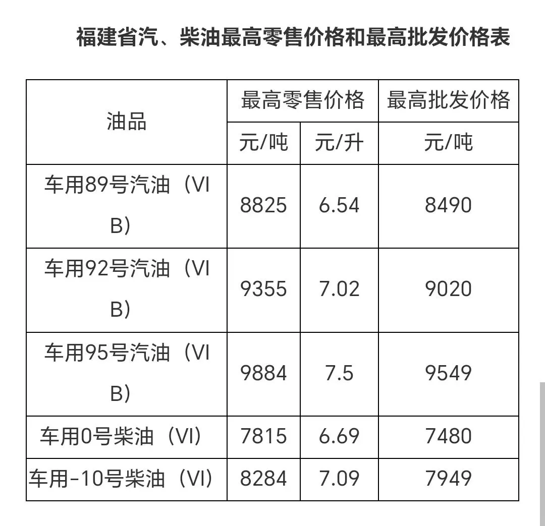 ↓目前福建油价如下↓