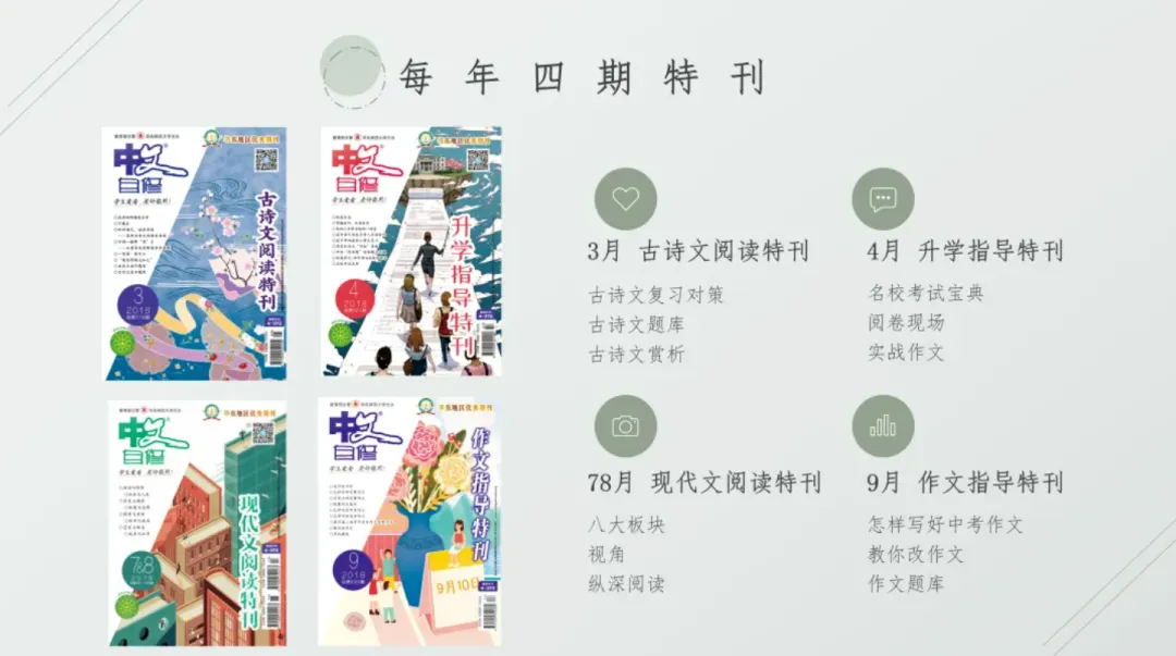 入会后,可在相应会员期内获取四大特刊的电子版,出版后即会在群内发送。初高中会员可获得古诗文阅读特刊、升学指导特刊、作文指导特刊和现代文阅读特刊的电子版。小学会员也将对应获得3月、4月、78月和9月四本杂志的pdf电子版。