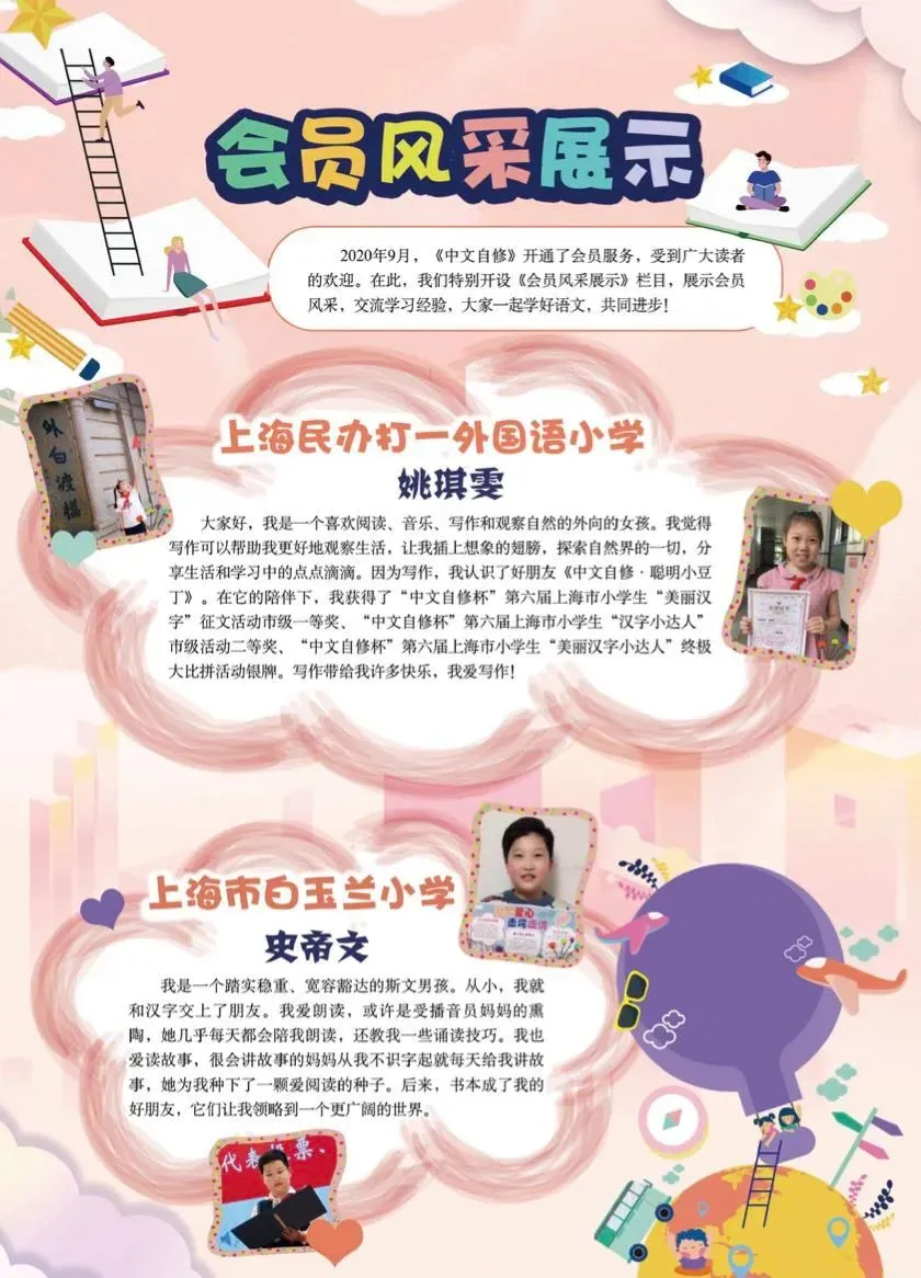 在《中文自修》官方微信公众号魔都语文课代表和杂志上,我们会以多样化的形式(图片、文字采访等)展示会员风采。