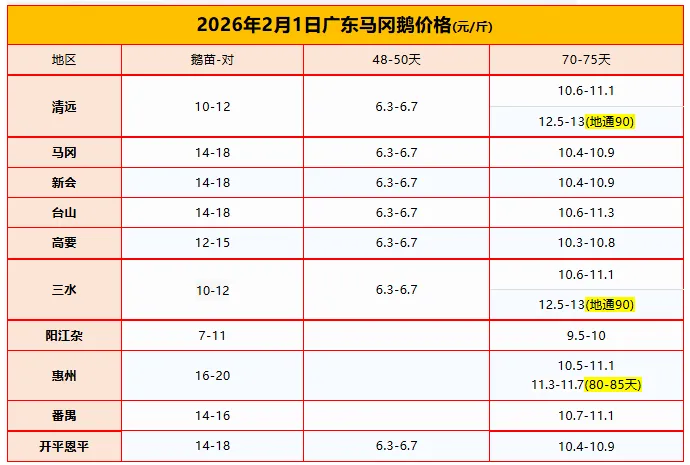 2026/2/1白羽鹅价(元/斤)仅供参考 养鹅人必备行情助手(鹅价天天报) |