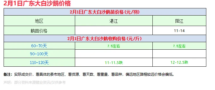 注:1.以上鹅价消息由广东广佛一线工作人员实地收集,不同地区鹅场均有一定差异,仅供参考!
